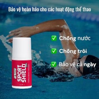 Công thức chống thấm nước cách mạng của SportShield XTRA ngăn ngừa ma sát gây ra chà xát và phồng rộp, đồng thời hoạt động cùng bạn trong những điều kiện khắc nghiệt nhất, ngay cả khi bơi lội.