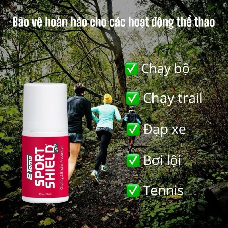 2Toms SportSheild Xtra giải pháp hoàn hảo chống trầy xước và phồng rộp cho các hoạt động thể thao, chạy bộ, chạy trail, đạp xe và bơi lội.