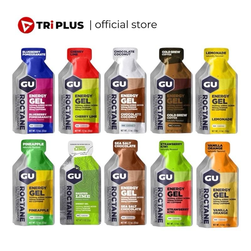GU Roctane Ultra Endurance Energy Gel chứa 100 calo trong mỗi gói. Đây là liều dùng lý tưởng để uống 15 phút trước khi tập luyện hoặc thi đấu để bổ sung đầy đủ kho dự trữ điện giải và glucose, tiếp theo là một gói mỗi 30-45 phút trong suốt quá trình, uống kèm với một vài ngụm nước.